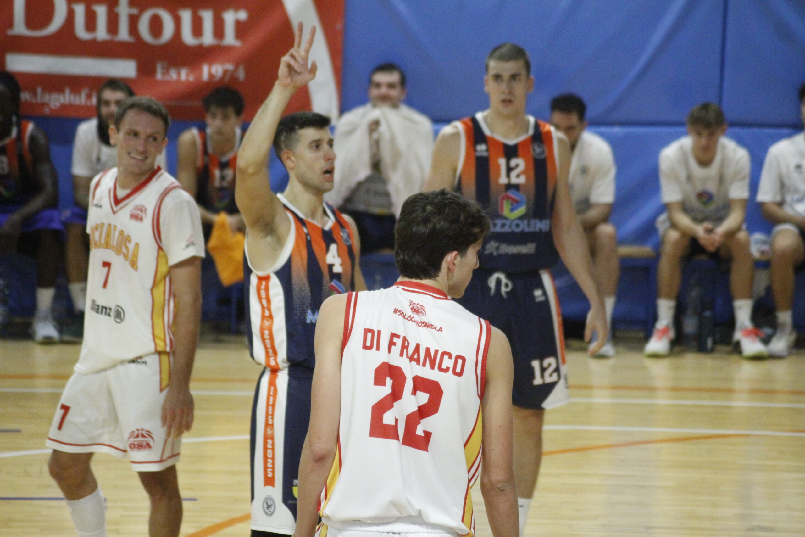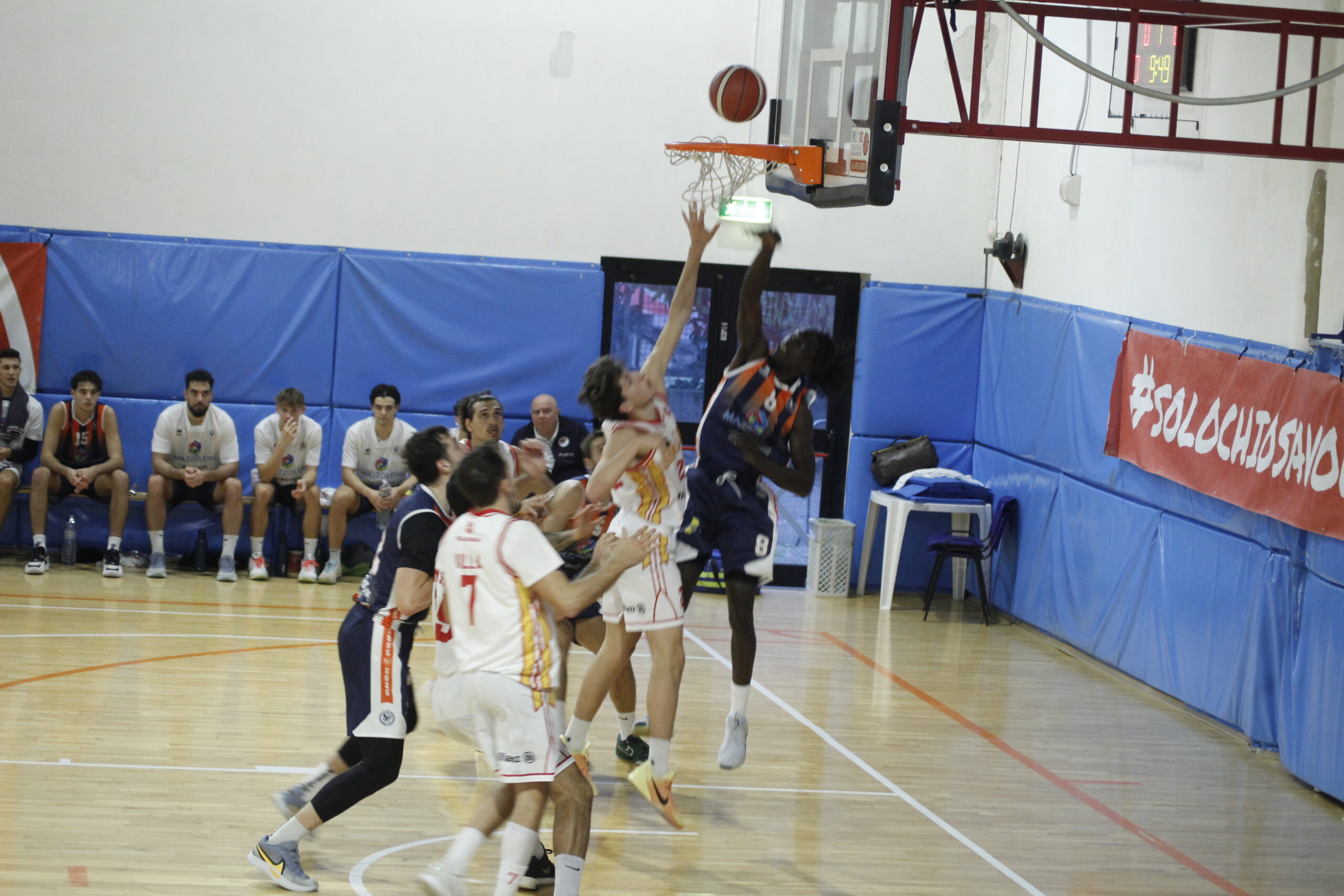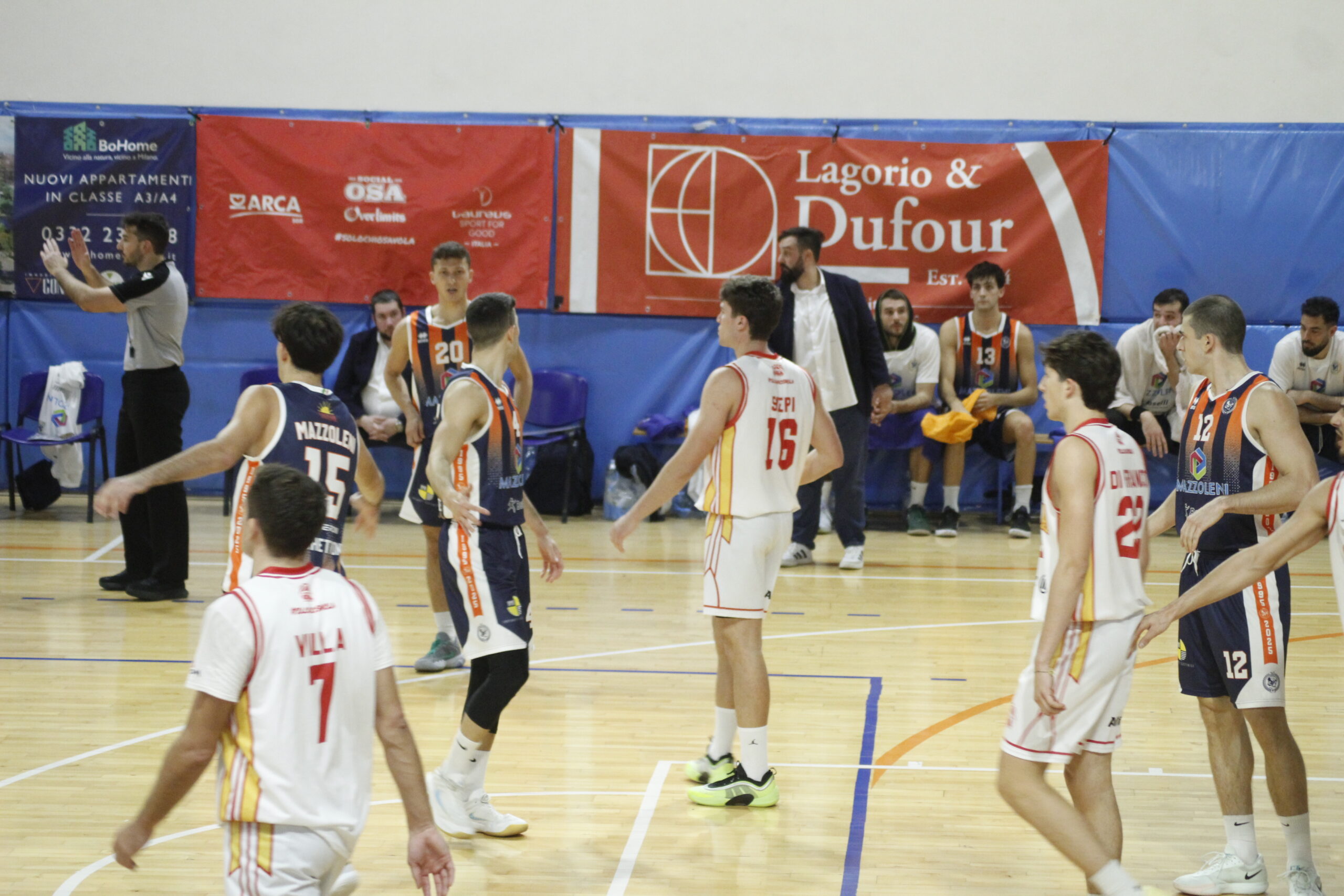 La squadra di coach Giovanni Baiardo (sostituito in panchina dal vice Pietro Piazzi e dallโassistente coach Roberto Spoto in virtรน della squalifica rimediata nellโultimo match) parte meglio e chiude avanti il primo quarto, ma Milano – grazie soprattutto al play Villa e al lungo Maspero – riesce a portarsi avanti 41-38 quando le squadre vanno allโintervallo lungo.